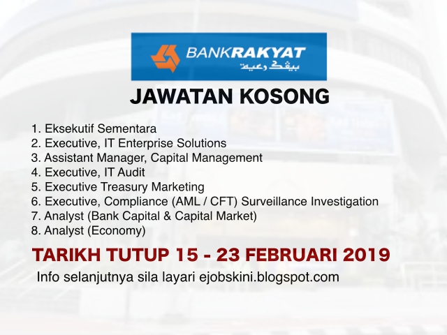 Jawatan Kosong Bank Rakyat [Tarikh Tutup: 23 Februari 2019]